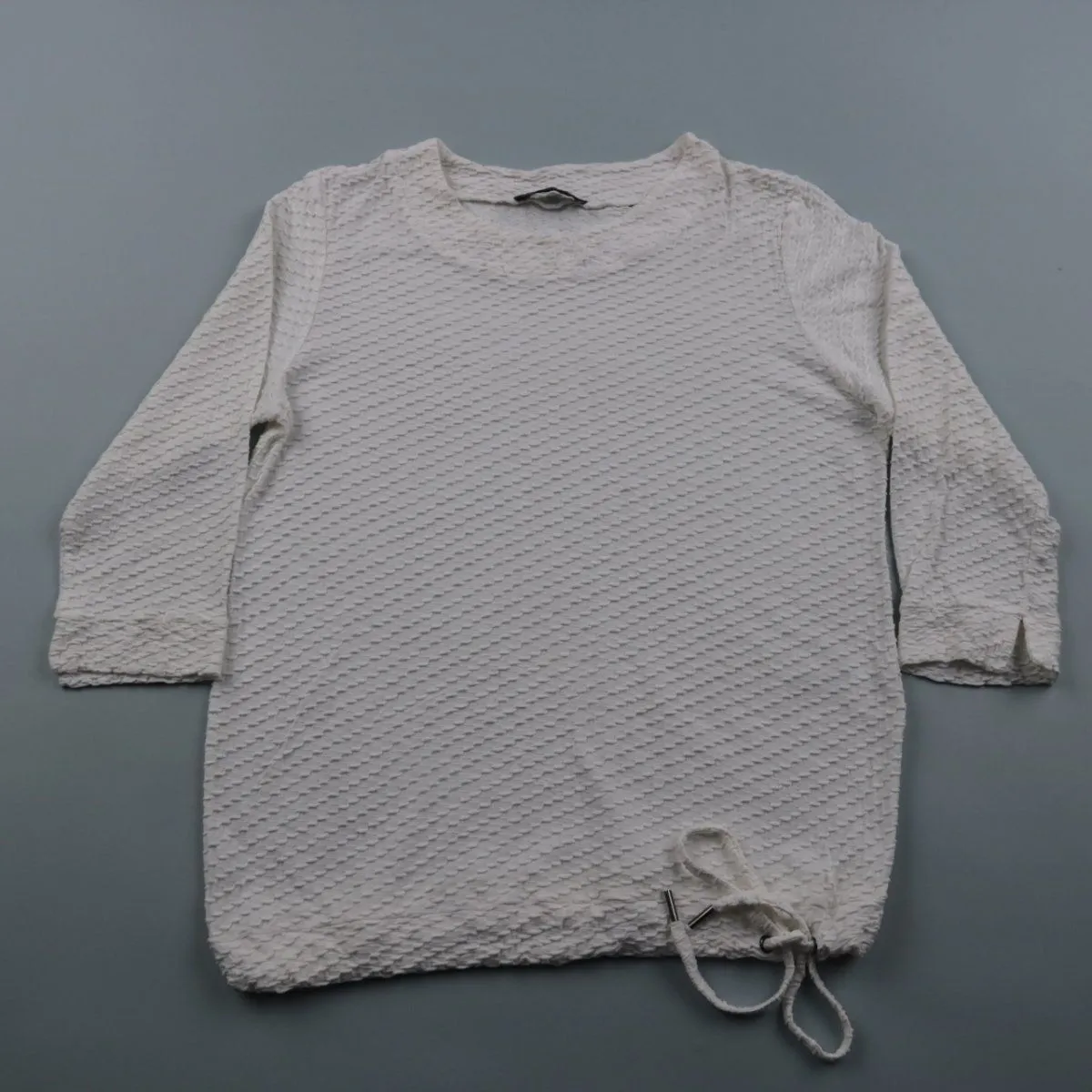 Фактурный лонгслив Roberto Sarto молочного цвета с длинным рукавом и округлым вырезом. Мягкий эластичный материал хорошо подходит для повседневных образов и в качестве базового слоя в прохладную погоду. Ткань почти не мнётся и комфортно тянется.