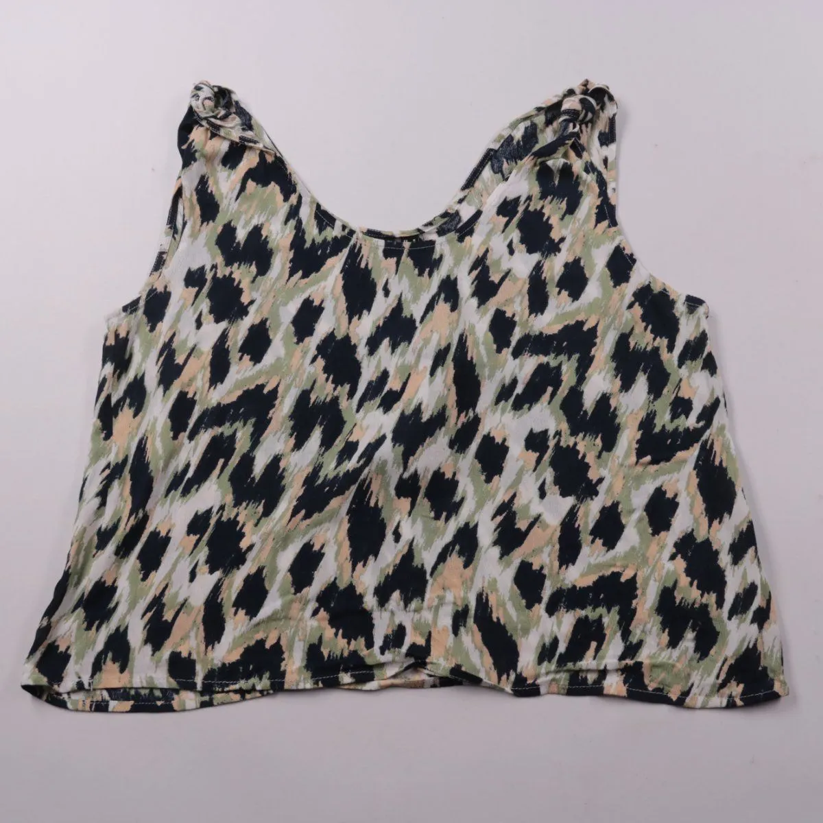 Майка Vero Moda без рукавов с абстрактным анималистичным принтом в спокойных оттенках. Подойдёт для летних образов и отдыха, хорошо сочетается с джинсами и шортами. Лёгкая вискоза приятна к телу и комфортна в жару.