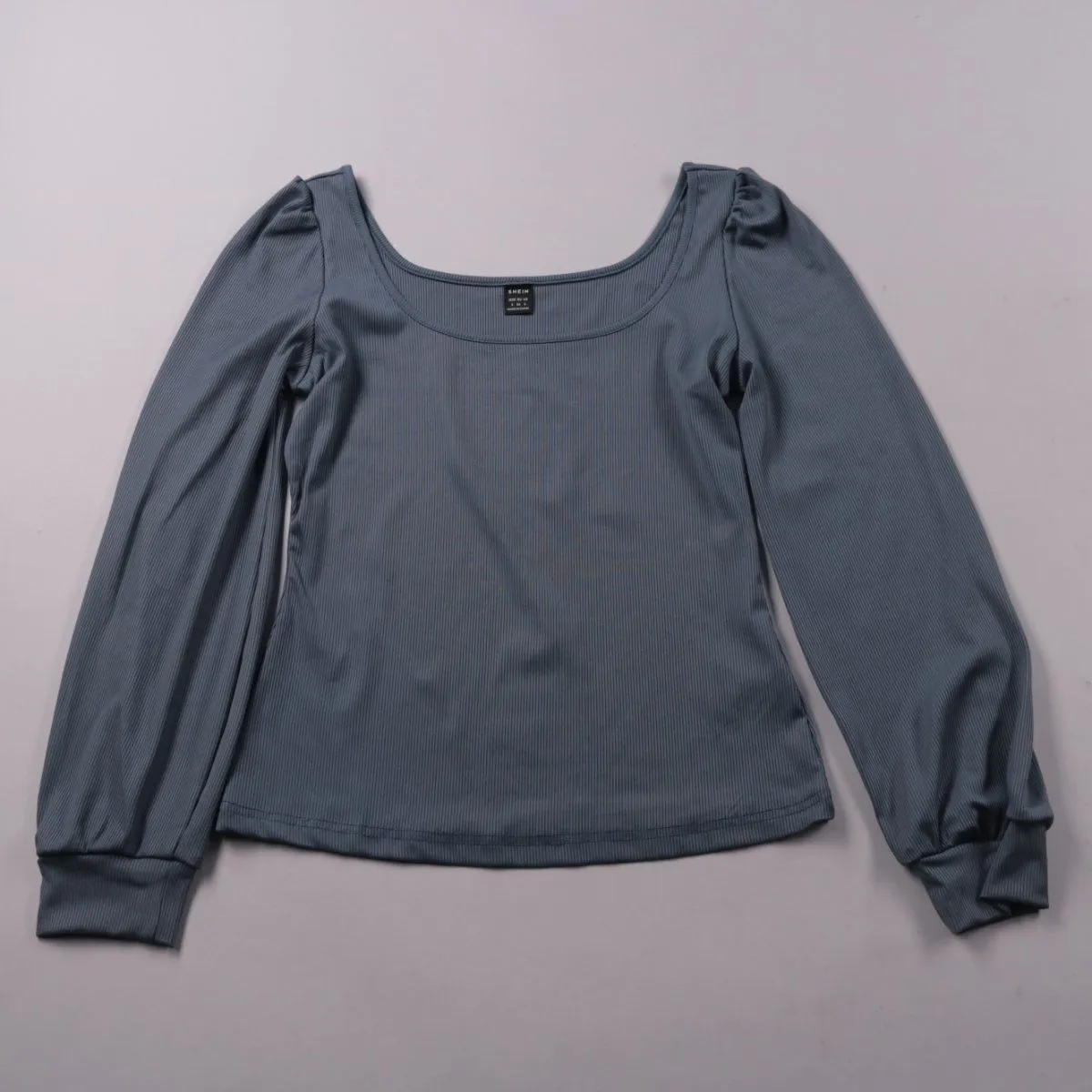 Женский лонгслив Shein в рубчик с квадратным вырезом и объёмными рукавами. Подойдёт для повседневных образов и на выход, хорошо сочетается с джинсами и юбками. Ткань тянется и комфортно садится по фигуре.