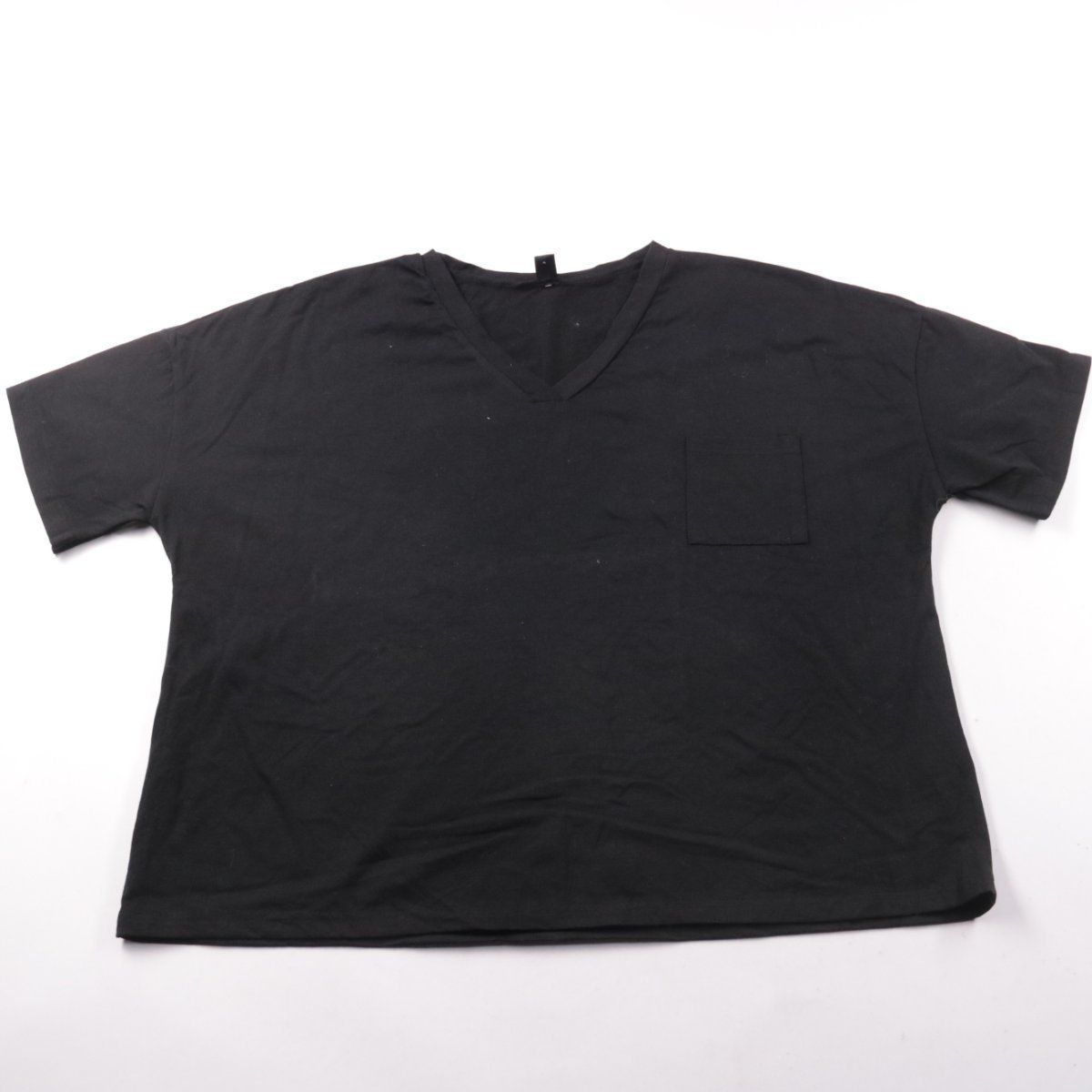 Футболка SHEIN Curve чёрного цвета с V-образным вырезом и нагрудным карманом. Подойдёт для повседневной носки и базовых образов. Ткань с добавлением эластана слегка тянется и комфортно садится по фигуре.