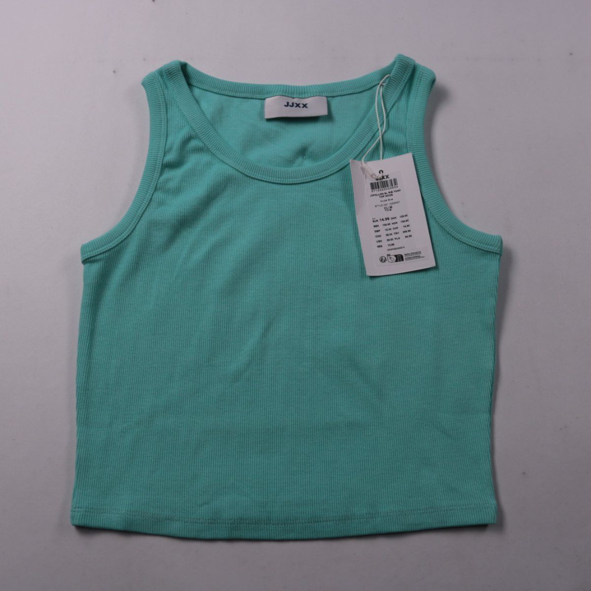Женская майка JJXX в рубчик в оттенке Aruba Blue, укороченная модель с круглым вырезом. Подойдёт для лета, спорта и многослойных образов с рубашкой или жакетом. Эластичный трикотаж хорошо тянется и комфортно облегает.