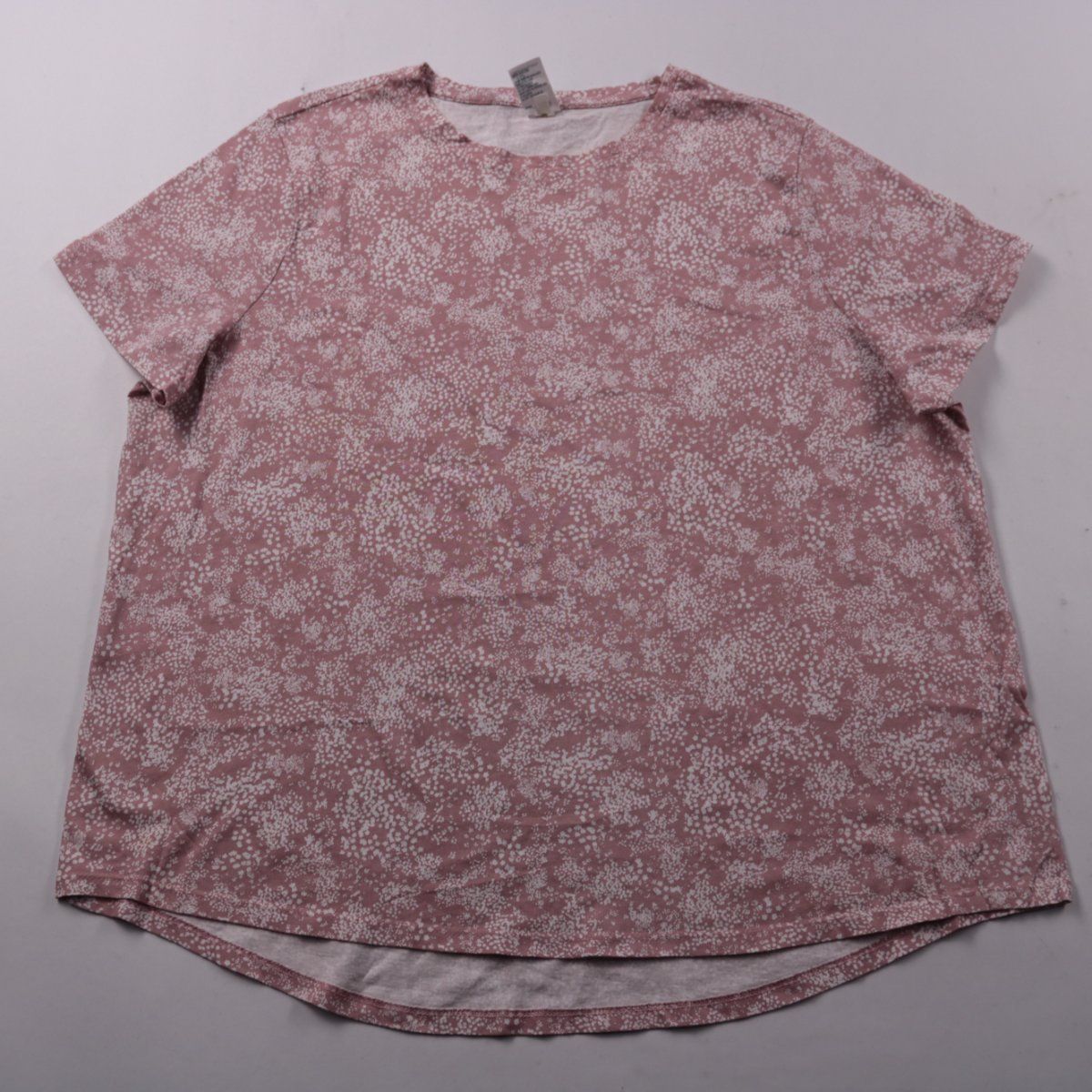 Женская футболка Anko розового цвета с белым крапом, прямого свободного кроя и с удлинённой спинкой. Подойдёт для повседневной носки и летних образов. Натуральный хлопок хорошо пропускает воздух и комфортен в жару.