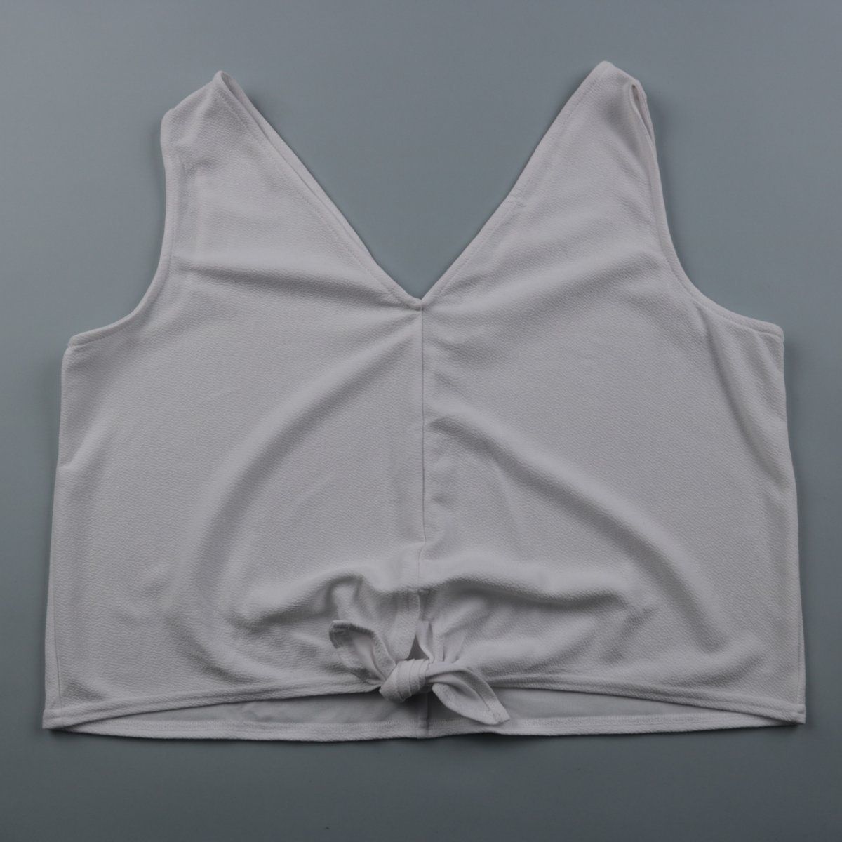 Белый укороченный топ Anko с V-образным вырезом и завязкой спереди. Подойдёт для летних повседневных образов и отдыха, хорошо сочетается с джинсами и юбками. Эластичная ткань комфортно садится по фигуре.