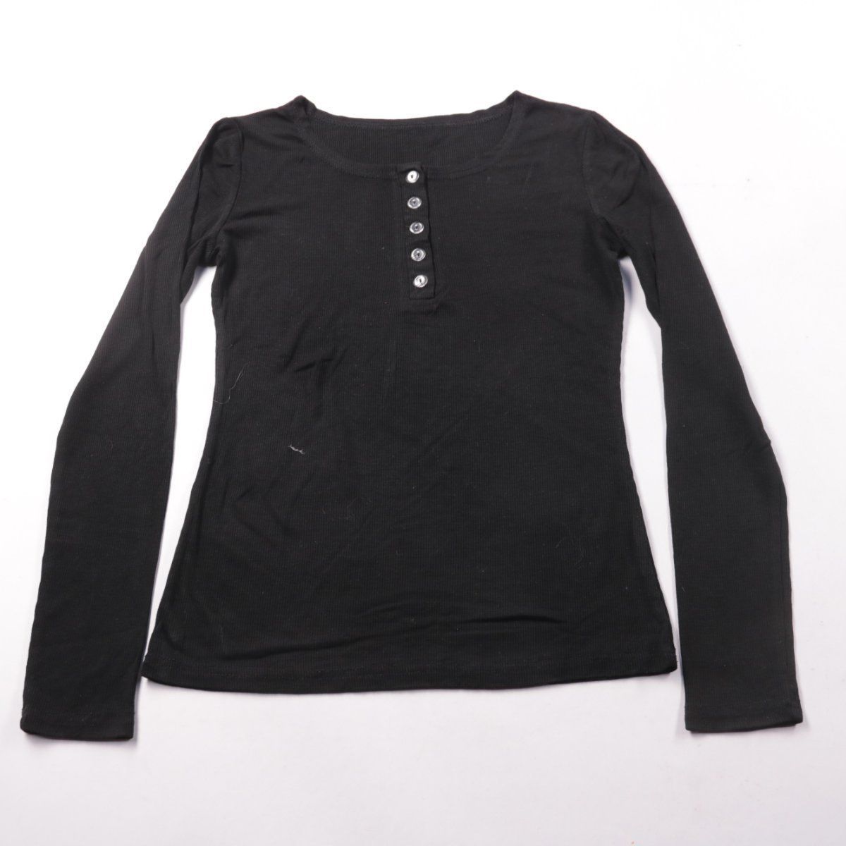 Чёрный лонгслив Shein в рубчик с короткой планкой на пуговицах. Подойдёт для повседневных образов и как базовый слой в прохладную погоду. Ткань тянется за счёт эластана и комфортно садится по фигуре.