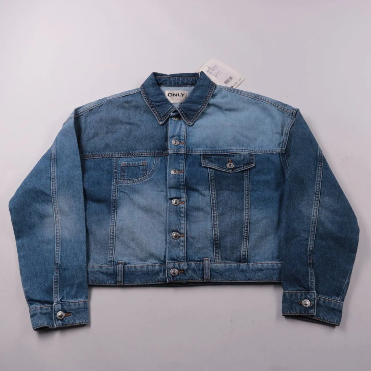 Джинсовая куртка ONLY из плотного денима среднего синего цвета, застёгивается на пуговицы и имеет нагрудные карманы. Подойдёт для повседневных образов в межсезонье и прохладным летом. 100% хлопок хорошо держит форму и практичен в носке.