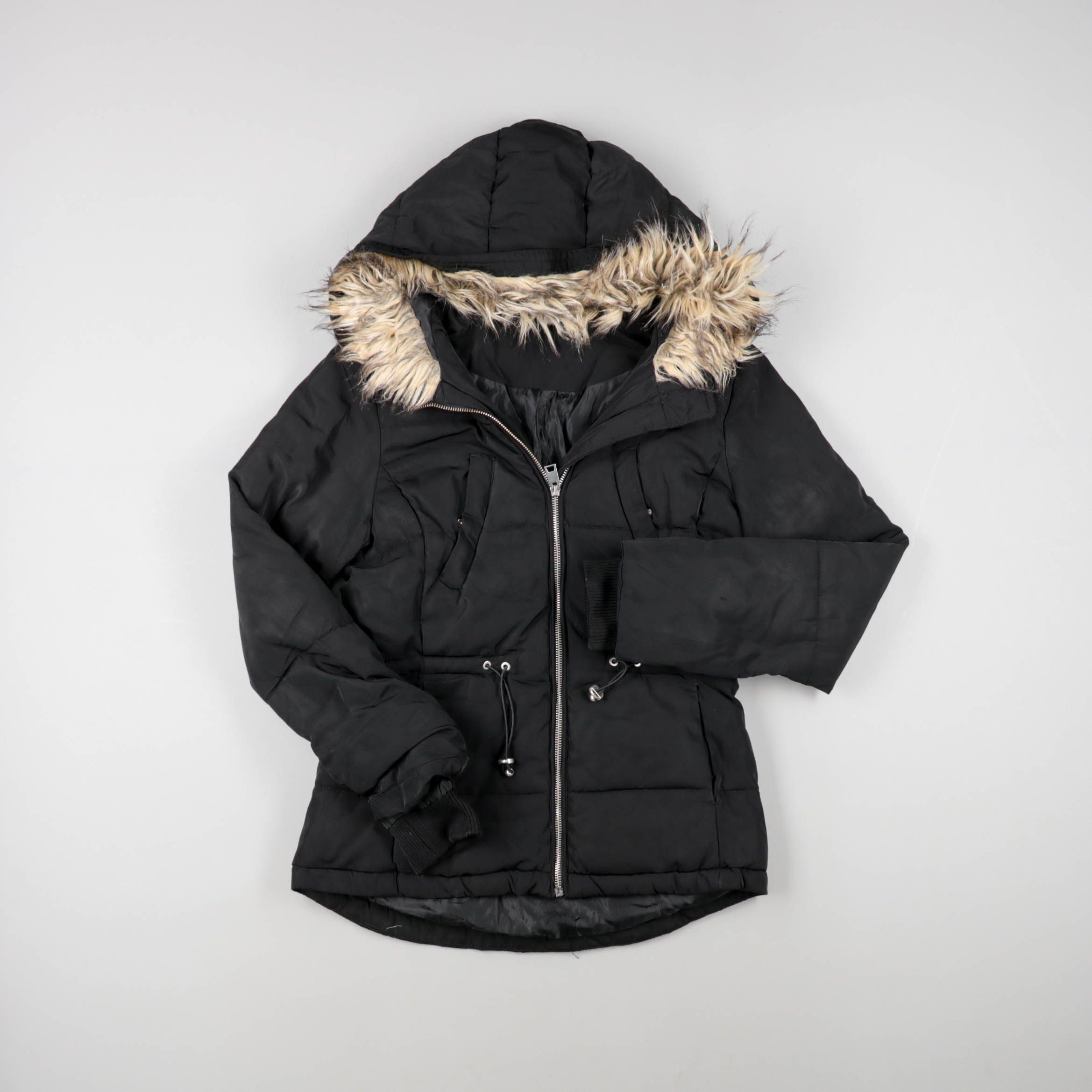 Женская зимняя куртка с капюшоном и отделкой из искусственного меха. Подойдёт для повседневной носки в холодную погоду, есть утяжка по талии для более аккуратной посадки. Практичный плюс — плотная застёжка-молния и тёплые манжеты, которые защищают от в...