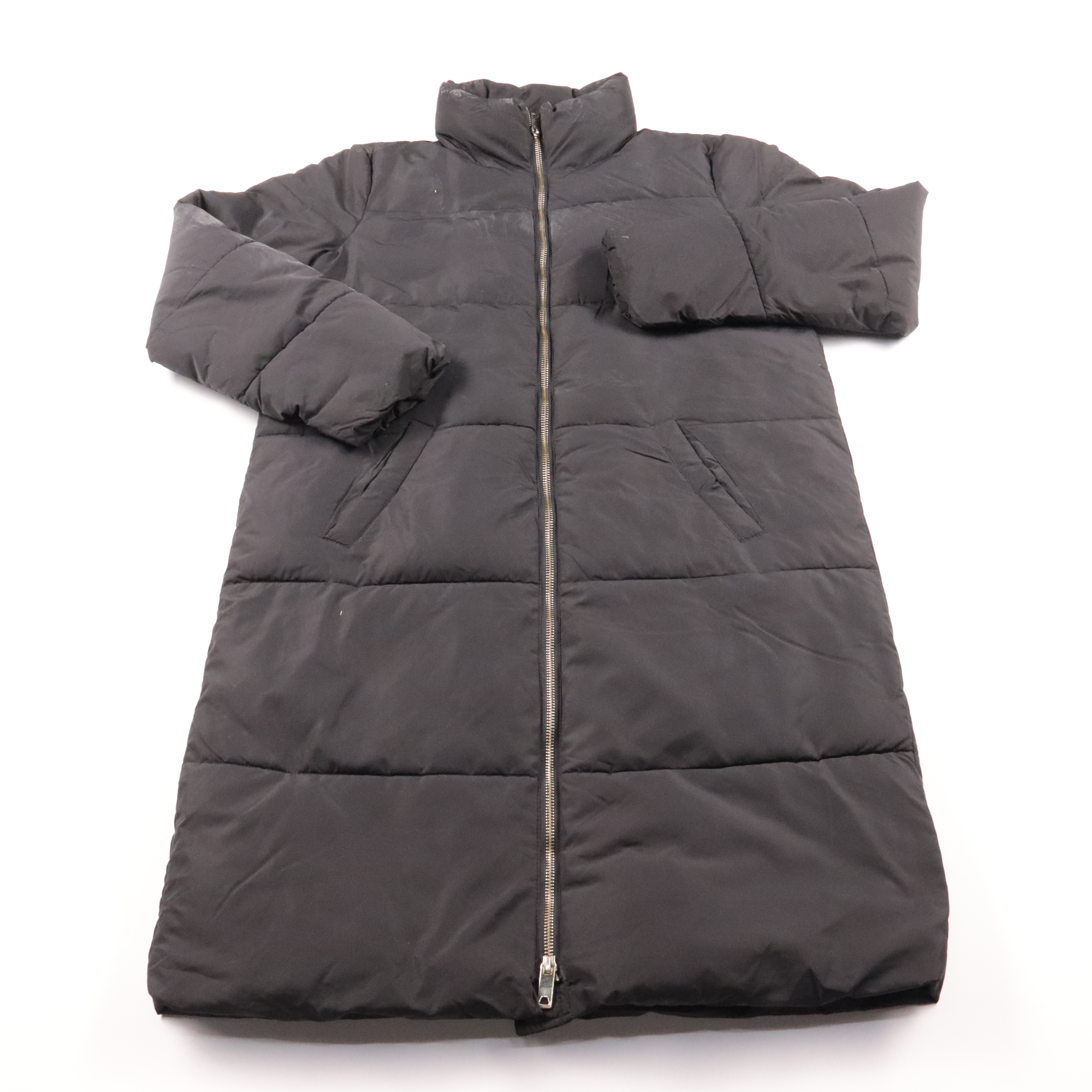 Удлинённый пуховик Jacqueline de Yong чёрного цвета с высоким воротником-стойкой и застёжкой на молнию. Подойдёт для зимних прогулок и повседневной носки, легко сочетается с базовой обувью и аксессуарами. Практичные боковые карманы и плотная стёжка хор...