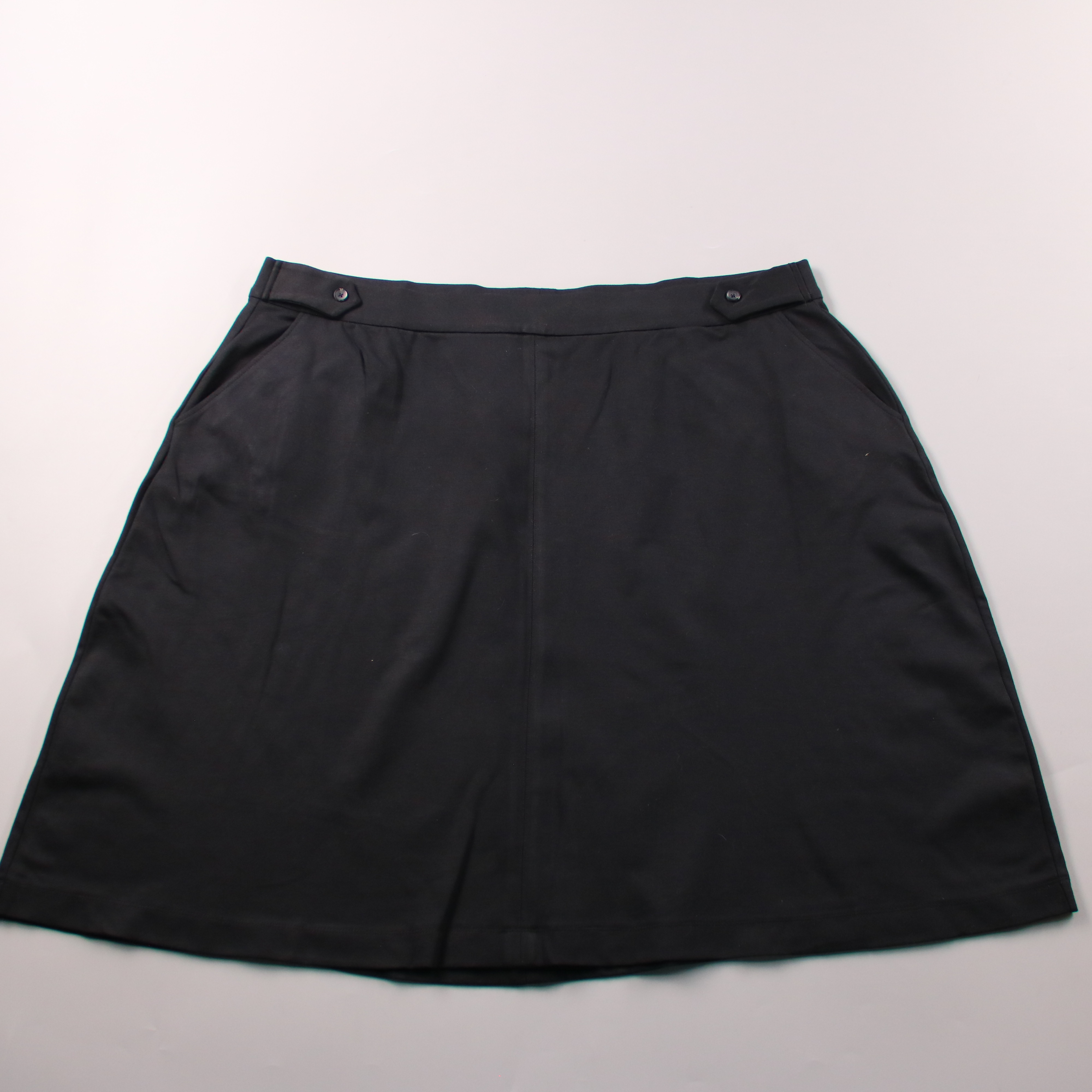 Юбка Greatlooks чёрного цвета, лаконичный А-силуэт с аккуратными декоративными клапанами на поясе. Подойдёт для офиса и повседневных образов с блузами, водолазками и жакетами. Практичный цвет и гладкая ткань легко сочетаются и не требуют сложного ухода.