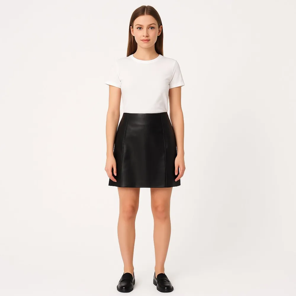 Юбка New Look из экокожи (покрытие полиуретан) чёрного цвета, с аккуратным кроем и гладкой фактурой. Подойдёт для офиса и на каждый день, легко сочетается с футболками, рубашками и жакетами. Материал практичный: протирается влажной салфеткой и быстро в...