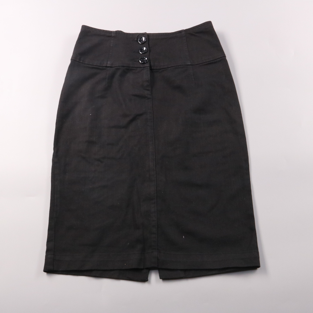 Юбка H&M чёрного цвета, прямого силуэта с высокой посадкой и декоративными пуговицами спереди. Подойдёт для офиса и повседневных образов с рубашками, водолазками и жакетами. Плотная хлопковая ткань со спандексом держит форму и немного тянется в движении.