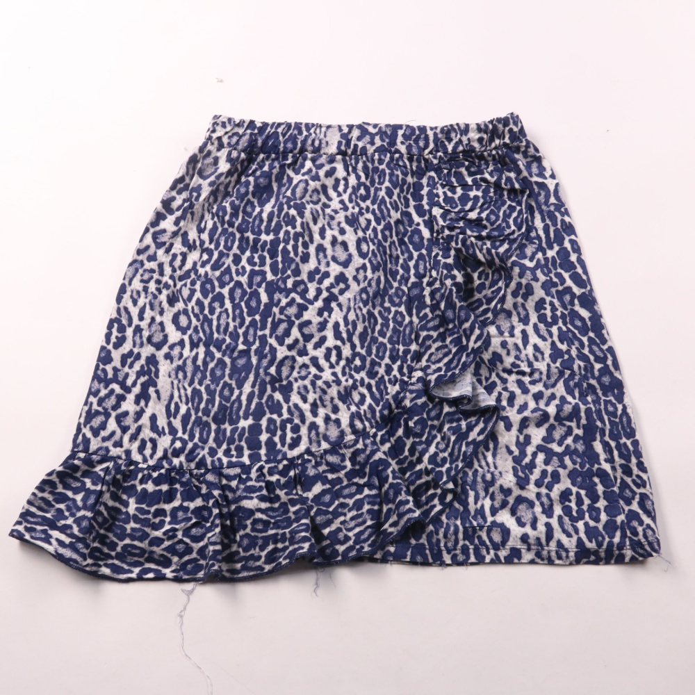 Лёгкая юбка LMTD с леопардовым принтом в сине-белой гамме и декоративными воланами. Подойдёт для летних прогулок и отпуска, легко сочетается с базовыми топами и кедами/сандалиями. Вискоза приятна к телу и хорошо дышит в жару.
