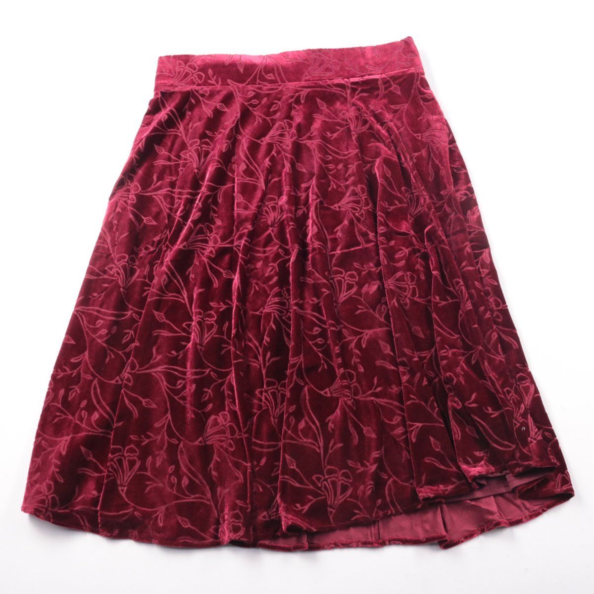 Бордовая юбка M&S из бархатистой ткани с жаккардовым цветочным рисунком и подкладкой. Подойдёт для повседневных образов и на выход в прохладную погоду, хорошо смотрится с однотонным верхом. Практичный плюс — плотный материал почти не мнётся и держит форму.