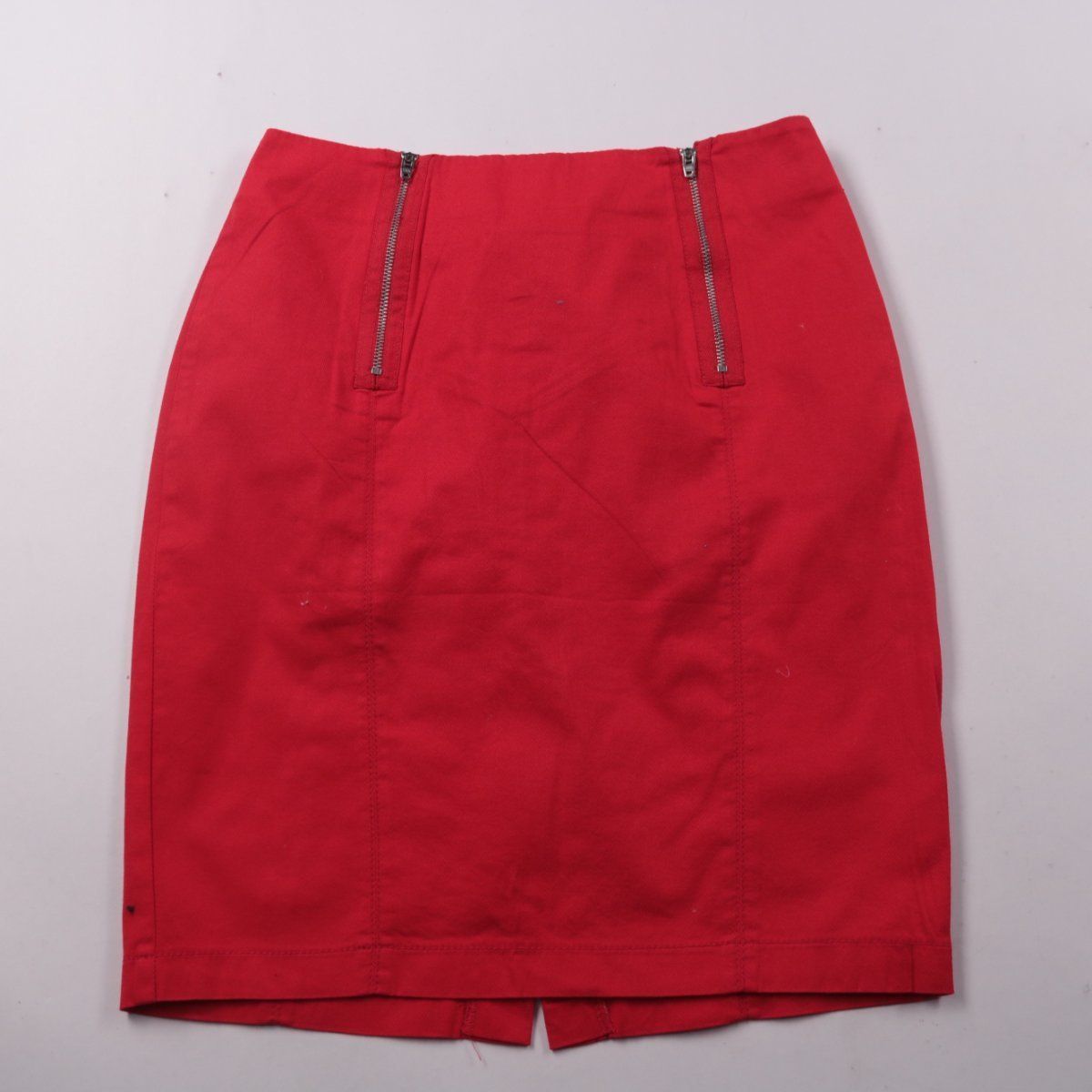 Красная юбка-карандаш с двумя декоративными молниями спереди и разрезом сзади. Подойдёт для офиса и повседневных образов, ткань слегка тянется за счёт эластана.