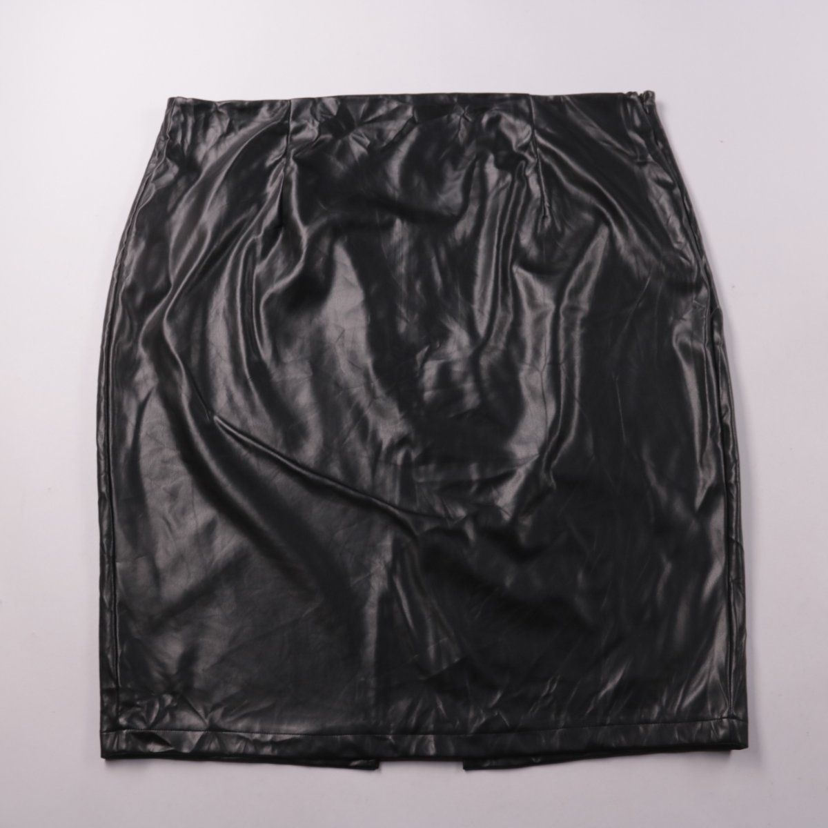 Женская юбка из экокожи чёрного цвета, прямого силуэта, с разрезом сзади. Подойдёт для повседневных образов и на выход в сочетании с блузой или свитером. Материал практичный и легко протирается влажной салфеткой.