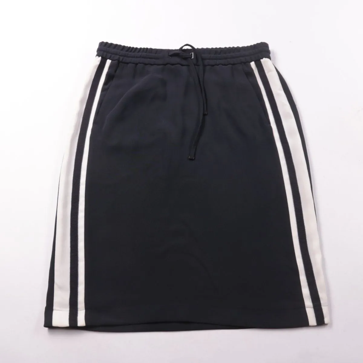 Спортивная юбка Luisa Cerano чёрного цвета с контрастными белыми лампасами по бокам. Подойдёт для повседневных образов и стиля sport-chic благодаря поясу на резинке с шнурком. Полиэстер хорошо держит форму и прост в уходе.